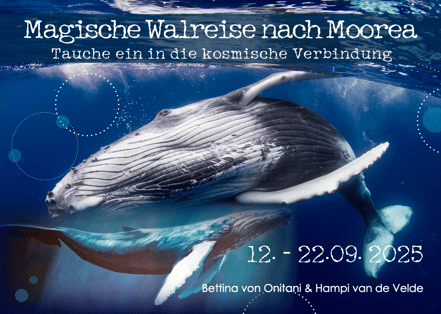 Die südpazifische Insel Moorea beherbergt mystische Orte, und der heilige Berg ist überall auf der Insel kraftvoll spürbar. Der blaue Ozean umgibt die Insel und dich, sodass du dich sicher und geborgen fühlst, während du mit den Walen schwimmst, ihren Gesängen im Meer lauschst und eine Erfahrung machst, die dein Leben zu verändern vermag.
